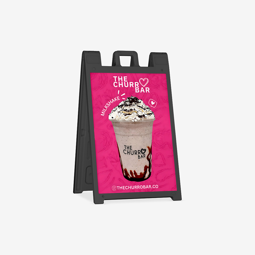 Get your message noticed with our portable custom signage A-frame signs! The bright, full-color digital imprint will draw in and engage your audience, making your signboard stand out from any event or promotional activity. Our signboards are designed with a weather-resistant plastic frame that won’t rust or splinter for long-lasting, maintenance-free outdoor use. The frame folds flat for easy storage and transport, and it also includes a molded handle for easy movement from one spot to another.