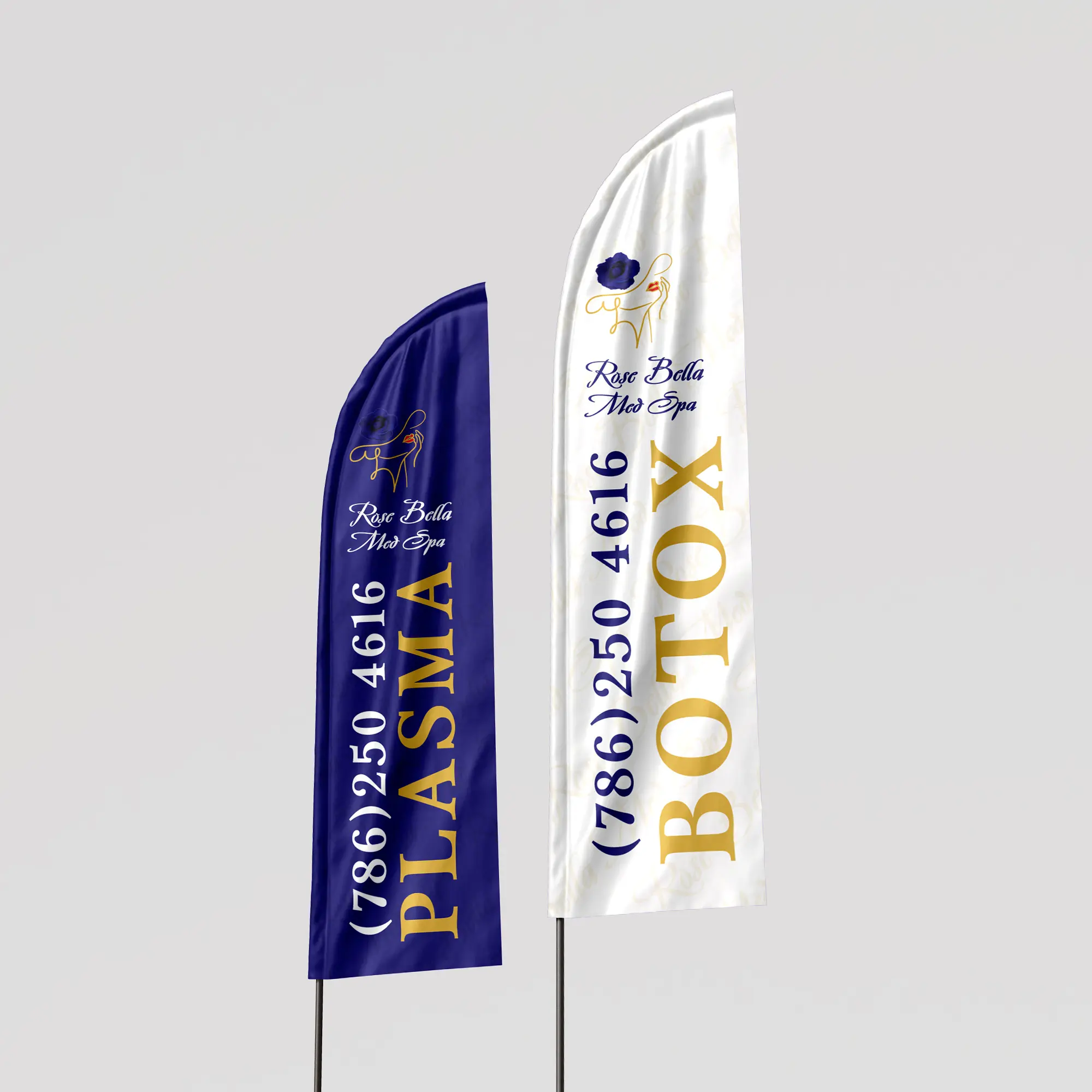 Feather flags are a highly visible and effective way to promote your brand or message at outdoor events! Our feather flags are designed with vibrant colors and vivid images, sure to capture the attention of passersby. Our flags are made from durable polyester material that is resistant to fading, so you can trust they will last through any type of weather.