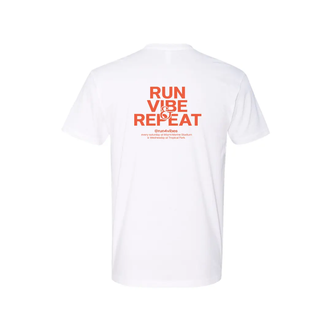 La Run4Vibes Classic Tee – Key Biscayne Run Vibe Repeat es la camiseta oficial para quienes quieren representar la esencia del club todos los días. Al frente, el icónico logo Running Club Key Biscayne – Miami; en la espalda, nuestro mantra que lo dice todo: Run • Vibe • Repeat.