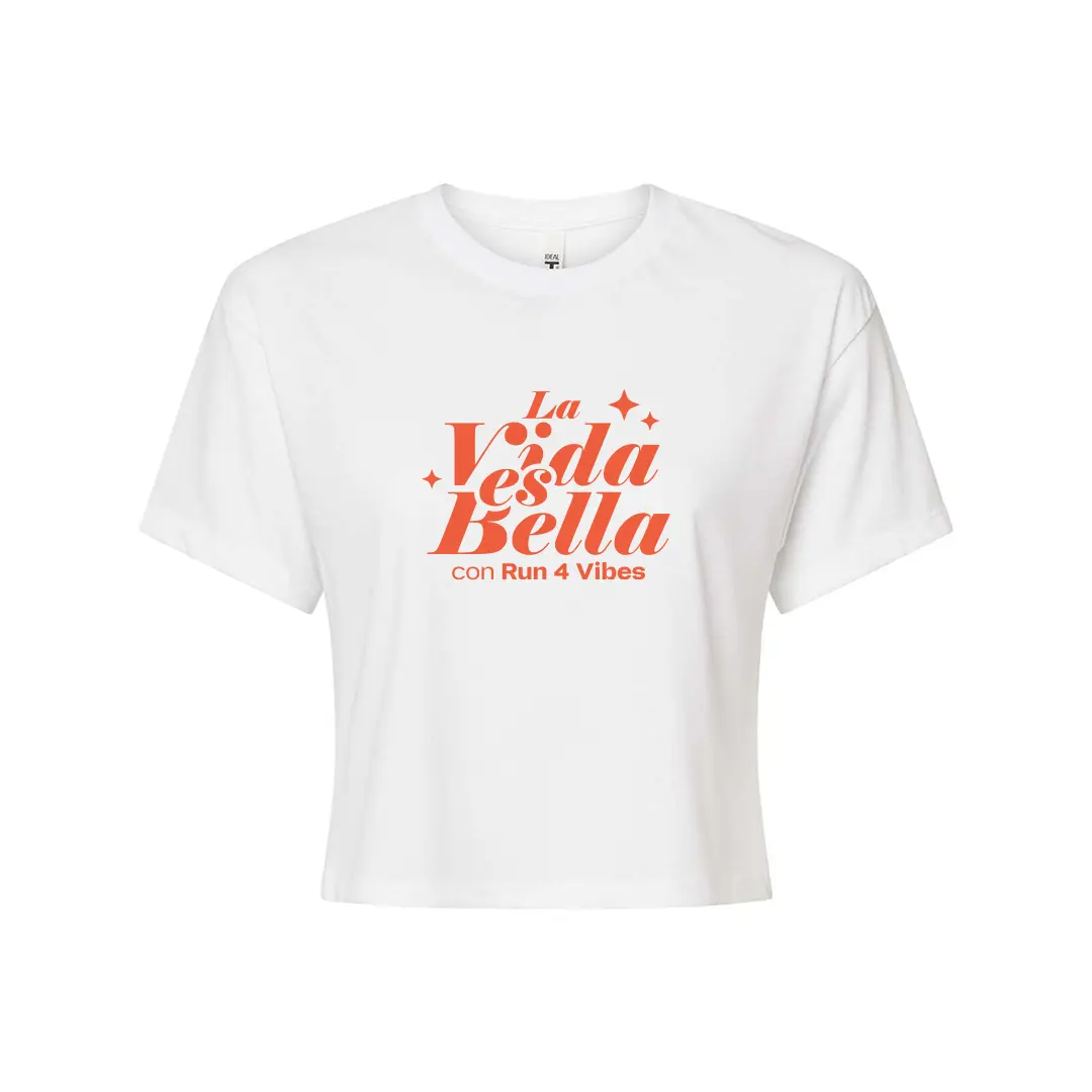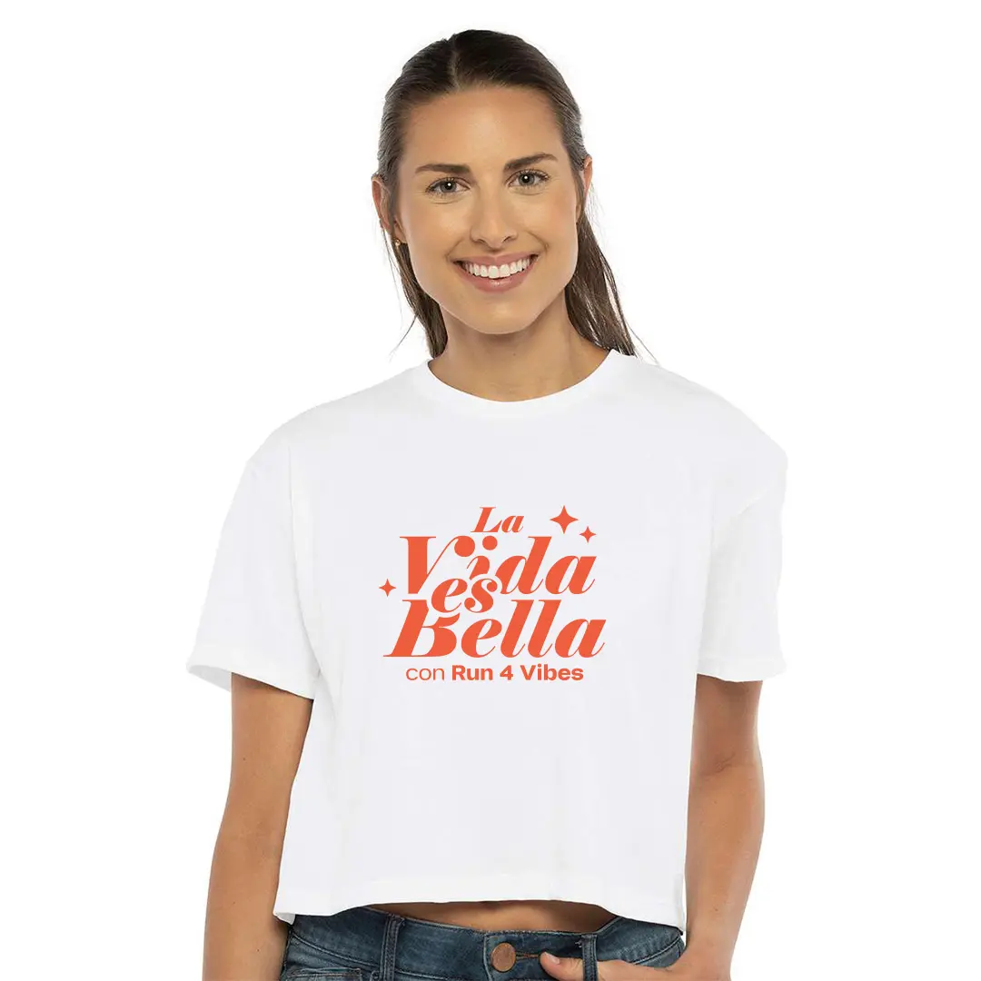 La Run4Vibes Cropped Tee – La Vida Es Bella es una declaración de actitud. Con un diseño fresco en el frente que celebra la frase “La Vida Es Bella” y el detalle de la comunidad en la espalda con @run4vibes, este cropped une moda, energía y pertenencia al club.